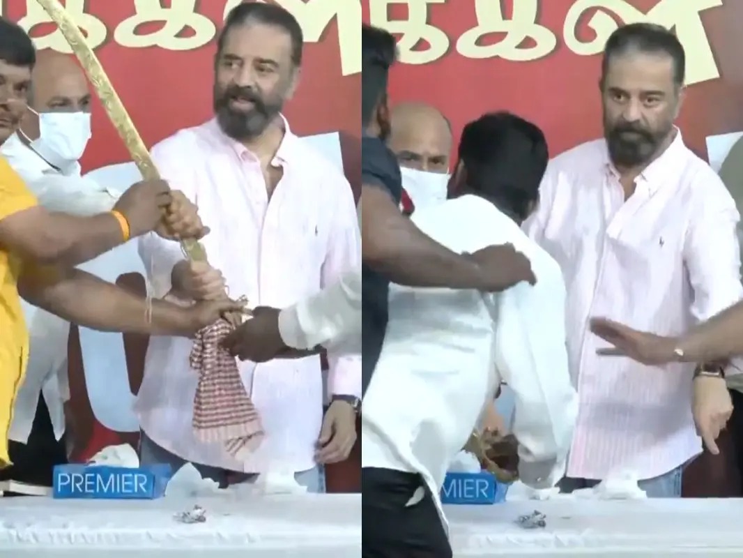 కత్తిని కానుకగా ఇచ్చిన అభిమాని.. కమల్ ఆగ్రహం.. వీడియో వైరల్!